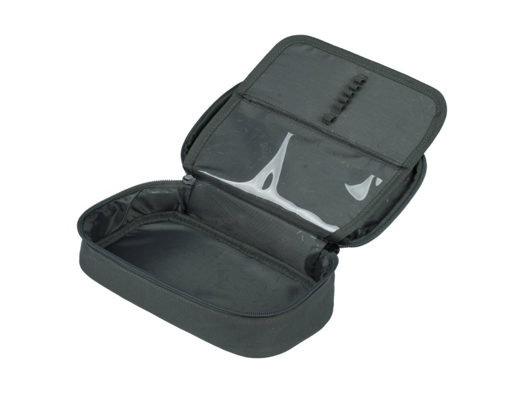 • Kompaktní penál na zip s prostornou hlavní komorou a dvojitou výklopnou chlopní nabízí dostatek prostoru pro psací potřeby i drobnosti.