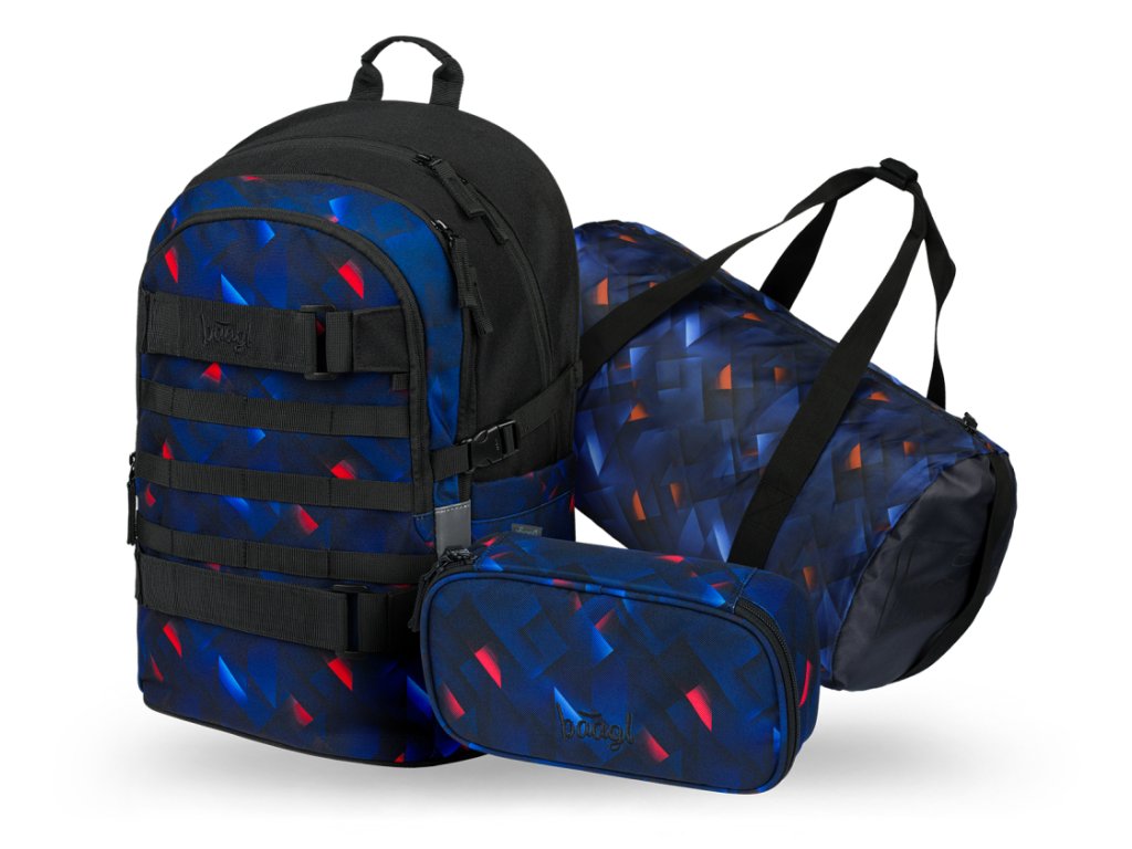 BAAGL SET 3 Skate Indigo: batoh, penál, sportovní taška GRS