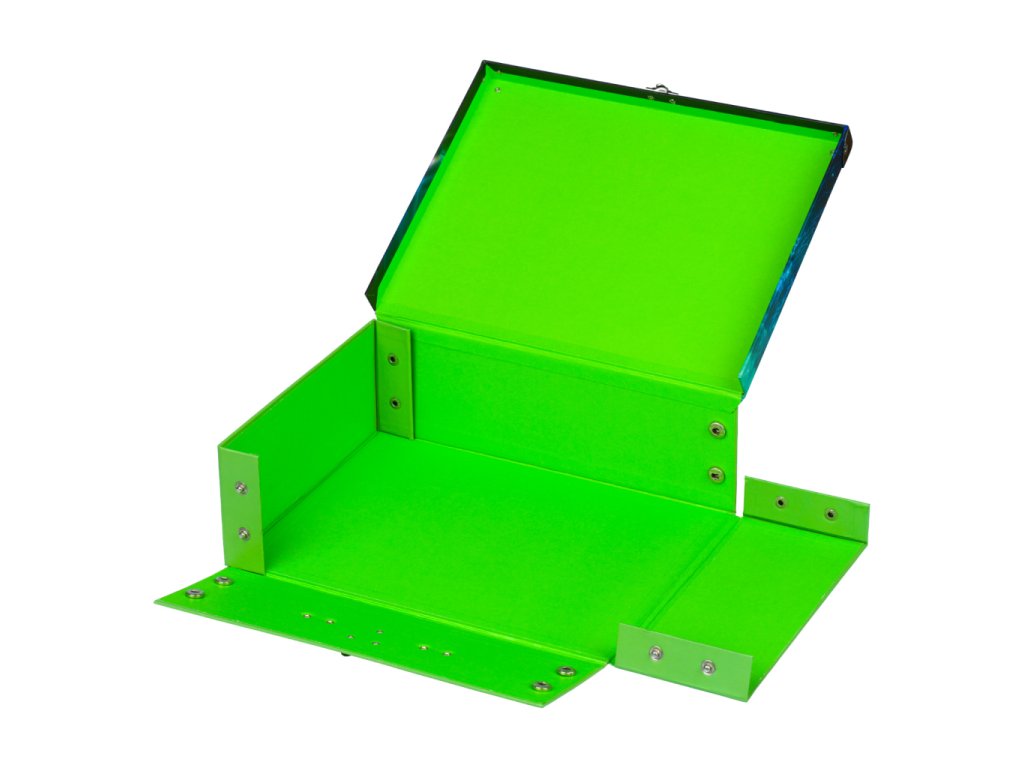 • Skládací kufřík z pevného laminovaného papíru s okovanými rohy.• Unikátní provedení s patentky, díky nimž se dají vždy znovu složit a rozložit.