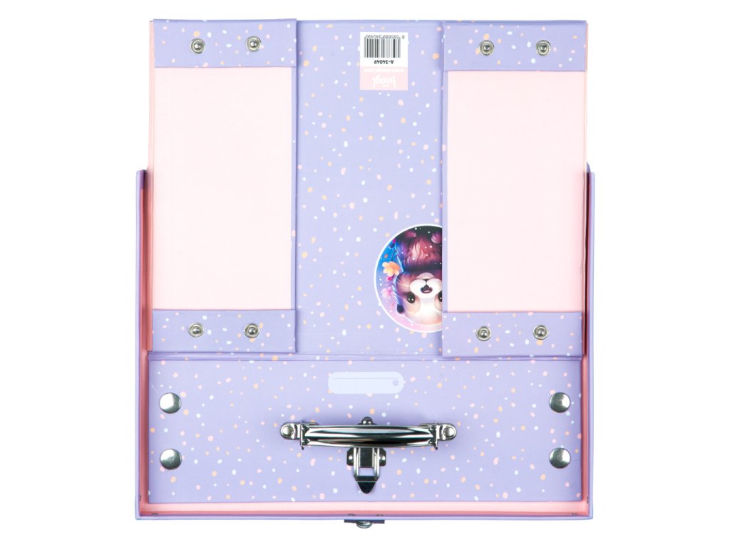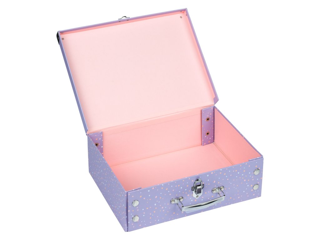 • Skládací kufřík z pevného laminovaného papíru s okovanými rohy.• Unikátní provedení s patentky, díky nimž se dají vždy znovu složit a rozložit.