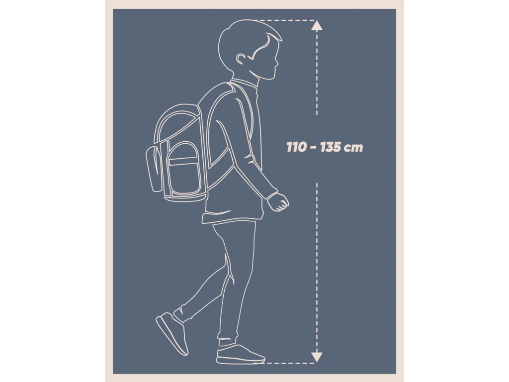 Školní aktovka ERGO s vyztuženým tělem, vhodná od 1. třídy ZŠ.• Posuvný zádový systém ERGO ADJUSTABLE SYSTEM umožňuje nastavení optimální polohy vzhledem k výšce dítěte.
