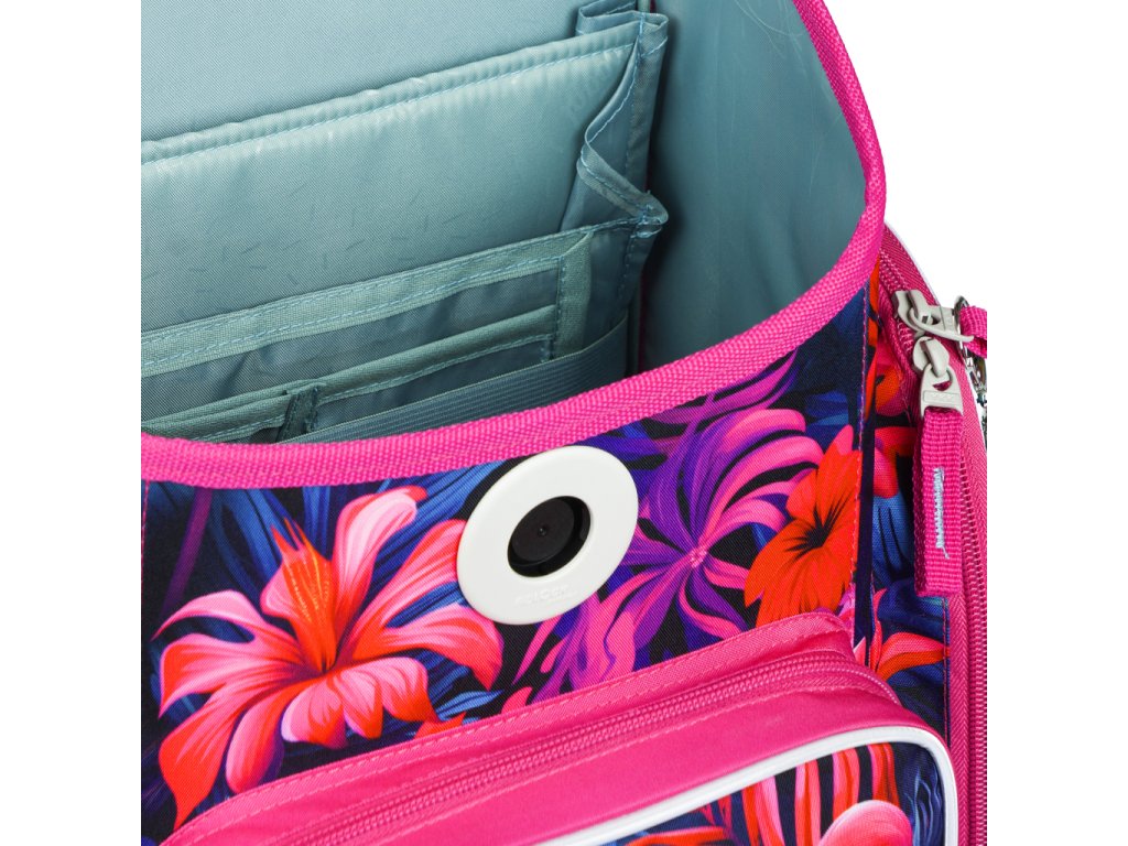 • Uvnitř aktovky je průhledná kapsa s rozvrhem a vnitřní organizér umožňující rovnoměrné rozložení hmotnosti.