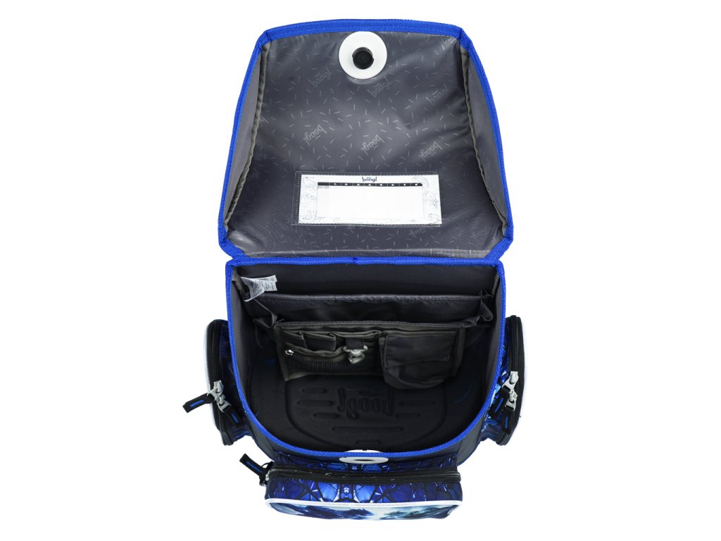 • Uvnitř aktovky je průhledná kapsa s rozvrhem a vnitřní organizér umožňující rovnoměrné rozložení hmotnosti.