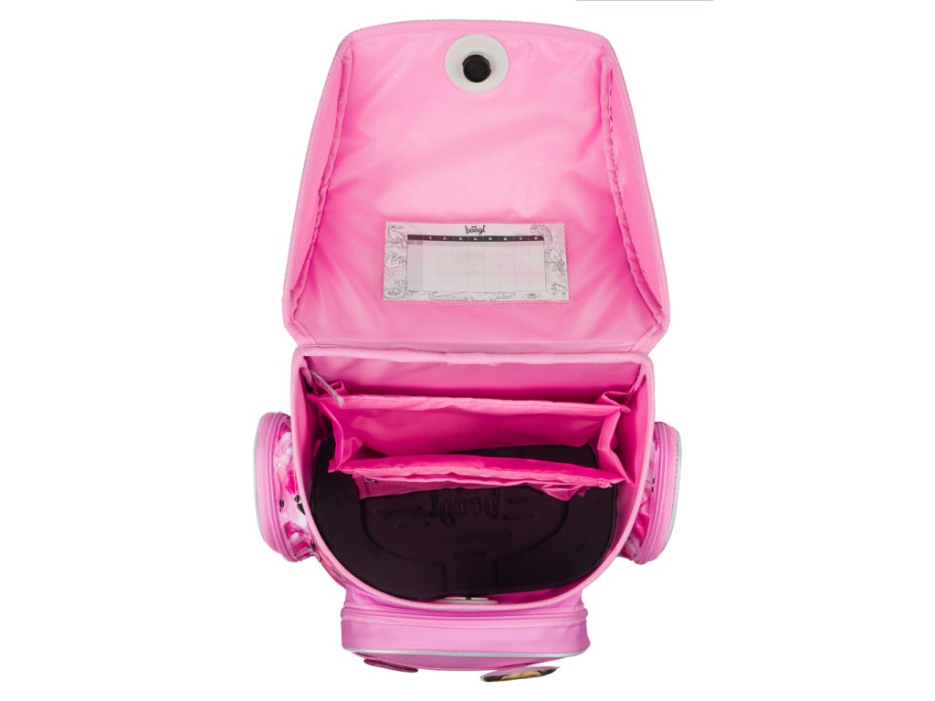 • Unikátní systém vyměnitelných odznáčků umožňuje přizpůsobit vzhled aktovky podle nálady a zájmů dítěte.