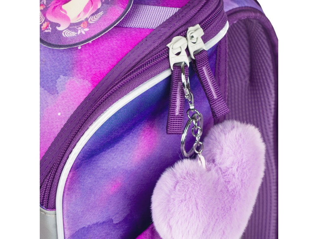 • Lehká školní aktovka s vyztuženým tělem je vhodná pro děti od 1. třídy ZŠ.• Posuvný zádový systém umožňuje nastavení aktovky na tři různé velikosti, díky čemuž taška roste spolu s dítětem.