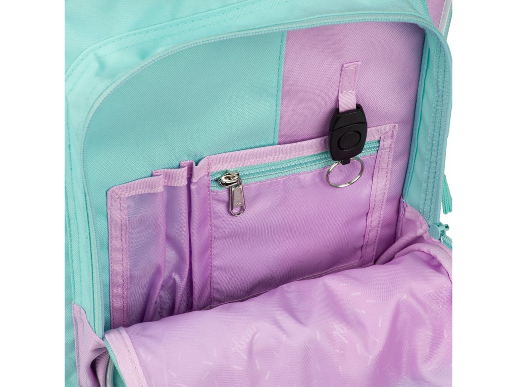 • Přední komora batohu obsahuje praktický organizér a také poutko s karabinou na zavěšení klíčů. Tuto karabinu je možné odepnout a používat samostatně.