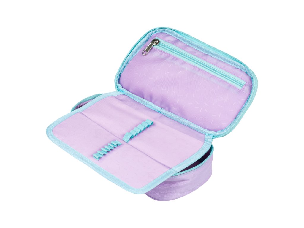 • Kompaktní penál na zip s prostornou hlavní komorou a dvojitou výklopnou chlopní nabízí dostatek prostoru pro psací potřeby i drobnosti.• Součástí penálu je také vnitřní kapsa a okénko na rozvrh hodin.