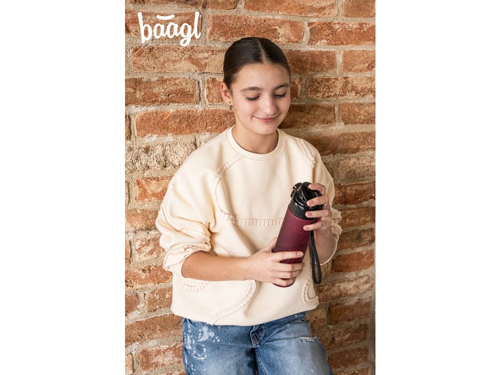 Ve školní výbavě nesmí chybět pořádná láhev na pití – a láhev od BAAGLu se hodí jak do školy, tak na výlety nebo do sportovního kroužku.Uzamykatelné víčko nepropustí ani kapku nápoje a zaručuje jednoduché a intuitivní používání. K láhvi je připevněné také poutko pro pohodlné nošení v ruce.