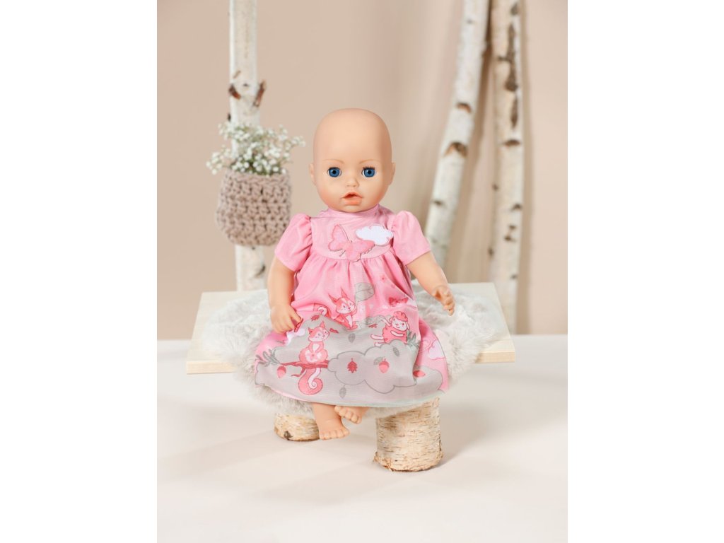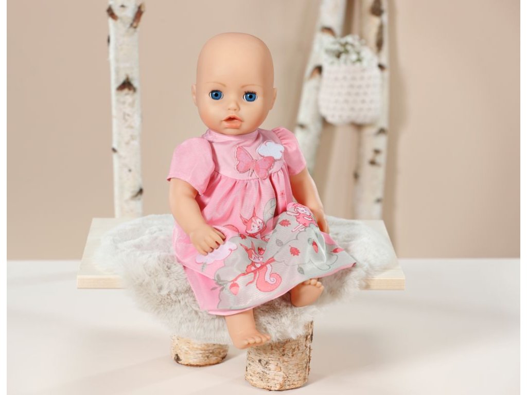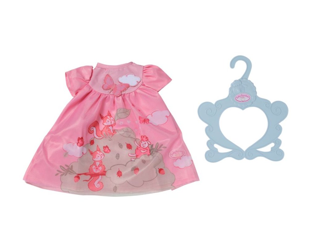 Růžový motýlek poletuje mezi nadýchanými bílými mráčky. Baby Annabell by už snad ani nemohla mít krásnější letní den. Stejné obrázky zdobí i dekolt růžových šatiček. Zbývá už jen jediná otázka. Zdalipak se veverka a ovečka na sukýnce lístečky pouze ovívají nebo se jejich máváním snaží vytlačit mráčky ještě výš do nebe? Ať je to tak či tak, jisté je, že Baby Annabell to bude v těchto vzdušných šatičkách vždy slušet. • Originální oblečení pro značkovou panenku Baby Annabell. • Kvalitní příslušenství podporuje fantazii a přináší nové podněty a možnosti pro hraní. Baby Annabell Šatičky růžové pro panenky velikosti 43 cm. Včetně ramínka.Doplňkové parametry