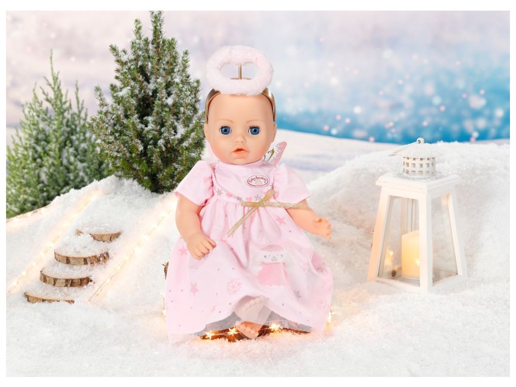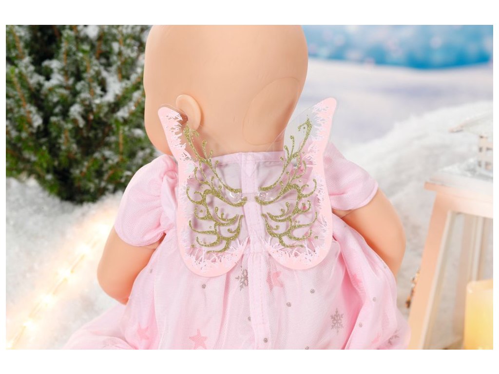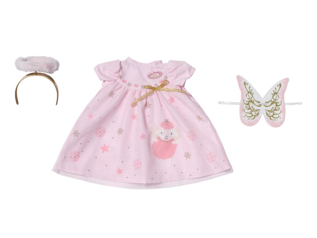 I když se Baby Annabell někdy může zdát jako malý čertík, většinou je to sladký andílek. A když má na sobě tyhle krásné růžové šatičky s jemnou vrstvou tylu, je to učiněný svatoušek. Šatičky jsou ozdobeny vzorem hvězdiček a vloček. Ze sukýnky mává oblíbená ovečka Baby Annabell, která vypadá jako Ježíšek. Horní část zdobí zlatá mašlička. Aby byl andělský outfit dokonalý, doplňují ho křídla se zlatými detaily a zlatá čelenka se svatozáří ze světle růžového plyše. • Originální oblečení pro originální panenku Baby Annabell. • Kvalitní příslušenství podporuje fantazii a přináší nové podněty a možnosti pro hraní. Baby Annabell Vánoční šaty pro panenky velikosti 43 cm. Součástí jsou šaty, křídla a čelenka se svatozáří. Včetně ramínka.Doplňkové parametry