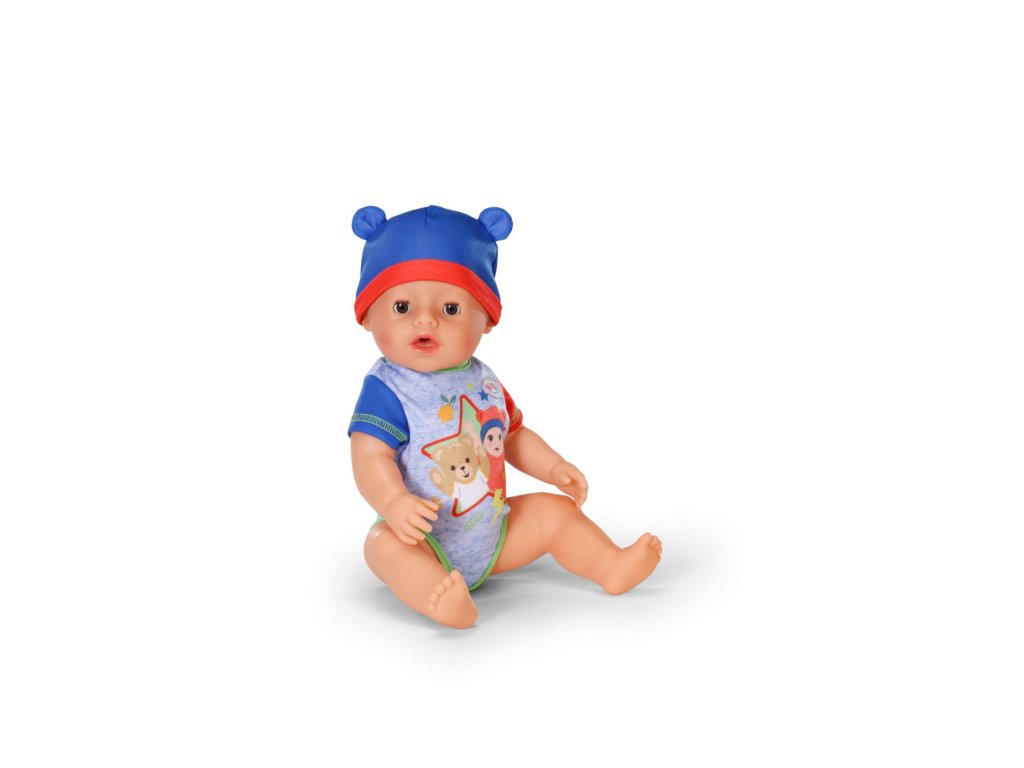 Představujeme Jonase! Panenku Jonase, známého z animovaného seriálu BABY born, který můžete sledovat na kanále BABY born v češtině na Youtube, můžete mít nyní i doma. V novém oblečku a s 10 doplňky. Přináší si s sebou i kouzelný talířek: když do talířku s bílou destičkou uvnitř dáte trochu vody, objeví se na destičce lahodné jídlo s roztomilým obličejem, které z krmení panenky udělá ještě větší zábavu. Když Jonase po nakrmení (vodou) nebo po napití vody z lahvičky posadíte na nočník a zmáčknete mu bříško, objeví se na destičce v nočníku obrázek čůrání a kakání. Když se Jonas napije vody z lahvičky, může ronit slzy a je třeba ho utišit. Pomoci může třeba kouzelný dudlík: když ho v pusince otočíte o 180 stupňů, očička se mu buď otevřou nebo zavřou. Otočte ještě jednou a stane se opak. Jonas ale dokáže ještě víc: má pohyblivé klouby a můžete ho vzít i do vany. Nyní dokonce uschne rychleji, než kdy dříve: abyste panenku po hraní dobře vyčistili, je k tomu možné odejmout jednu nohu a vytvořit tím větší otvor pro čištění panenky. Voda tak z panenky snadněji odteče. Pro ještě zajímavější hru si Jonas do svého nového domova kromě lahvičky, dudlíku, talířku s destičkou s obrázkem jídla a nočníku s destičkou s obrázkem čůrání a kakání přináší také plenku, rodný list, arch samolepek a dva náramky přátelství – jeden pro panenku a jeden pro její malou maminku – na důkaz dlouhého a láskyplného kamarádství mezi dítětem a panenkou. V kvalitě BABY born, která těší celé generace dětí už od roku 1991.Doplňkové parametry