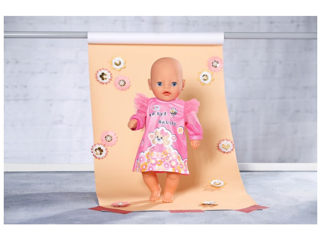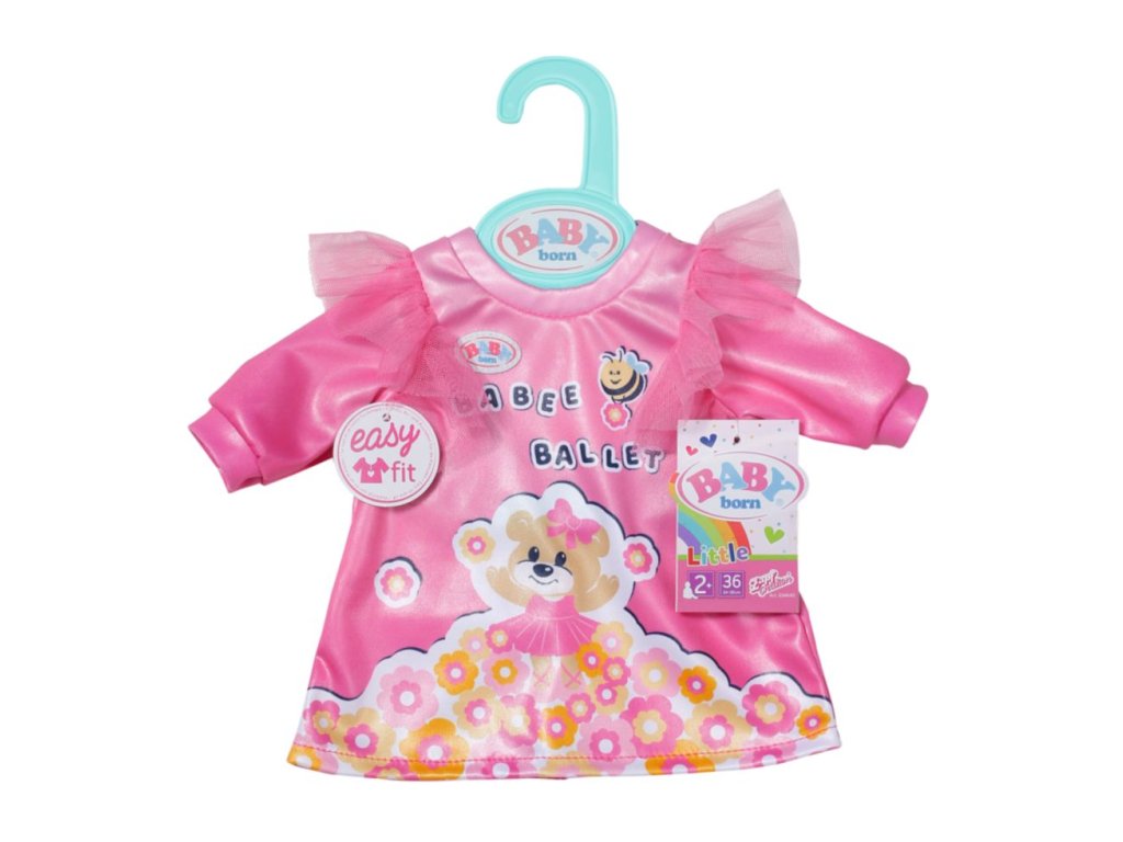 Bzz, bzz, bzz… Věděli jste, že včeličky tančí před svými vchodovými dveřmi, aby svým pilným kamarádkám ukázaly cestu k nejlahodnějšímu nektaru a nejlepšímu květovému pylu? V růžových šatičkách nacvičuje i BABY born Little baletní taneček. Někdy u toho však vypadá trochu nešikovně, spíš jako tančící medvídek. Medvědí slečna na šatičkách je oblečena jako balerína, která tančí na květinové louce. Volánky na ramenou vypadají jako okvětní lístky. Šatičky jsou ušity ve stylu „easy fit“, takže převlékání hravě zvládnou i nejmenší ručičky. • Kvalitní oblečení pro značkovou panenku BABY born. • Pro radost z nápadité, rozmanité a dlouhotrvající hry. • Střih „easy fit“ pro snadné převlékání. BABY born Little Šatičky pro panenky velikosti 36 cm. Včetně ramínka.Doplňkové parametry