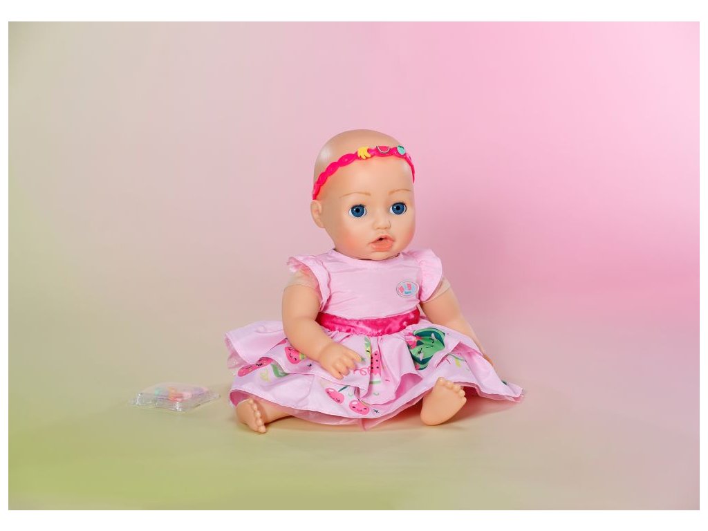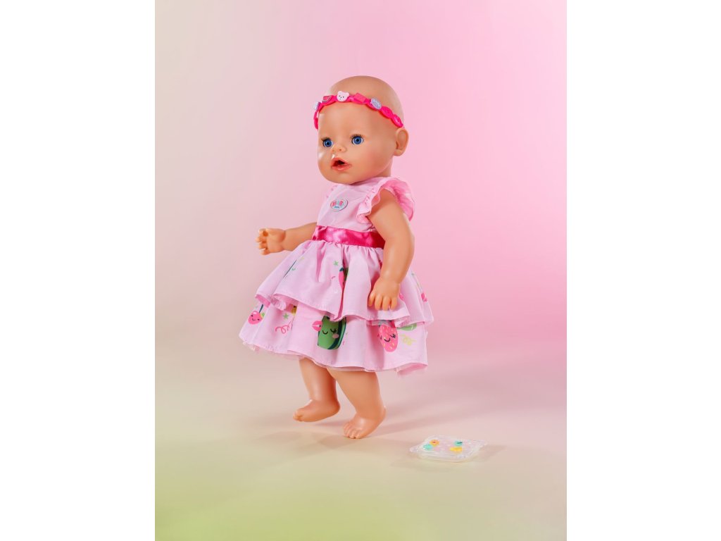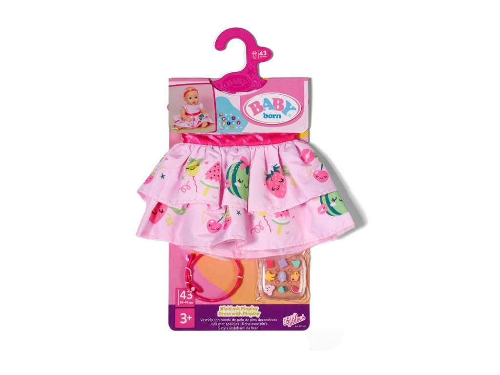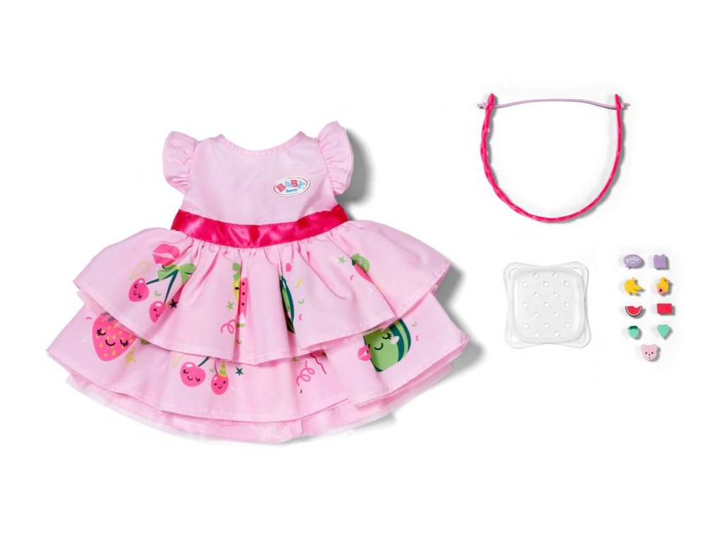 BABY born šaty s čelenkou do vlasů a nacvakávacími ozdobami pro panenky velikosti 43 cm. • Více než jen šatičky: Sada šatiček a čelenky, kterou lze různě ozdobit nacvakávacími ozdobami. • Krabička na uložení: Kromě nacvakávacích ozdob obsahuje také krabičku na jejich uložení.Doplňkové parametry