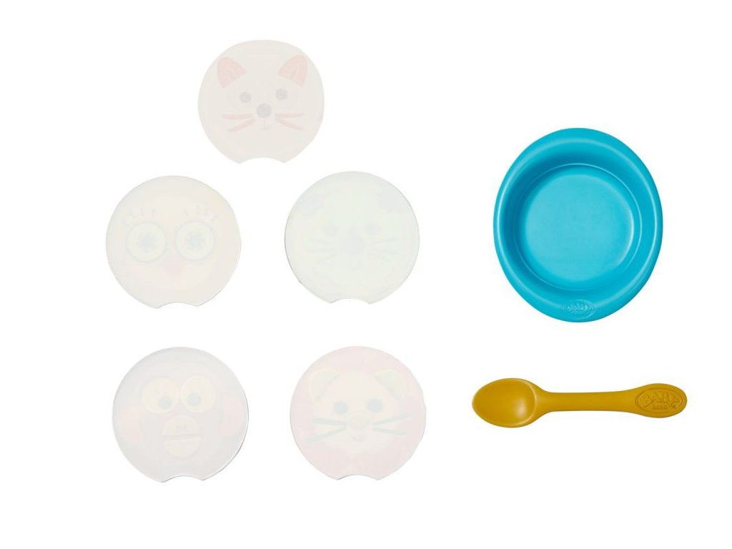 „Co bude dnes k obědu, BABY born? Užijte si ještě více zábavy při obědvání s BABY born. Tato mistička pro panenky je dodávána s destičkami, na kterých se kouzelně objeví jídlo, když se namočí vodou. Každé jídlo je na mističce namalováno s veselou tvářičkou. Jakmile destička uschne, obrázek zmizí a vše je připraveno na příště. Součástí sady je 5 destiček s obrázky různých jídel, mistička a lžička.“Doplňkové parametry