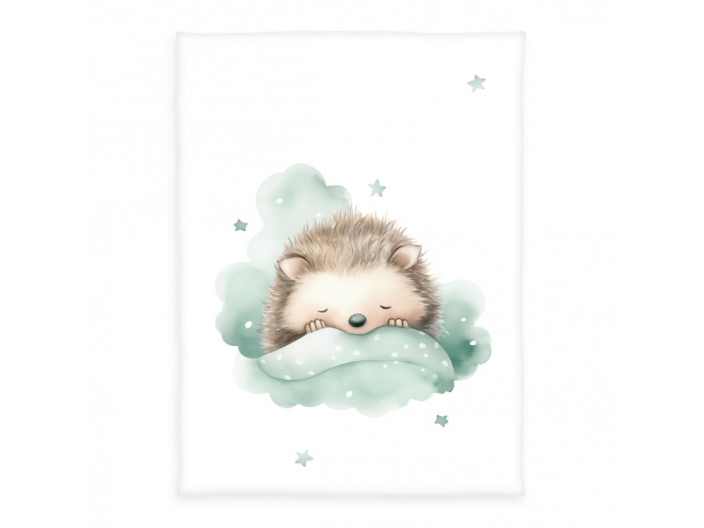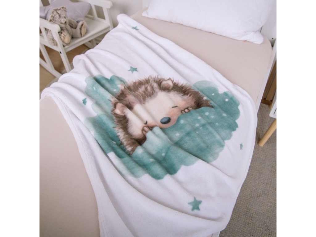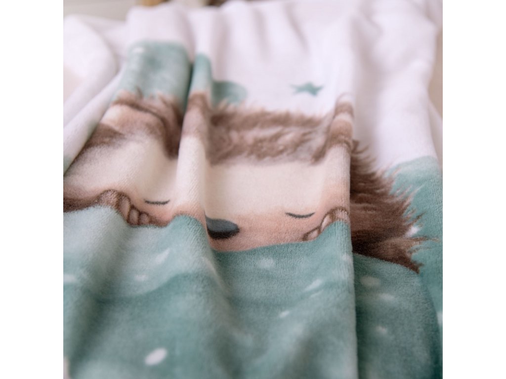 Roztomilý motiv spinajícího ježka navodí jemnou, uklidňující atmosféru a stane se oblíbenou dekou vašeho drobečka ✨