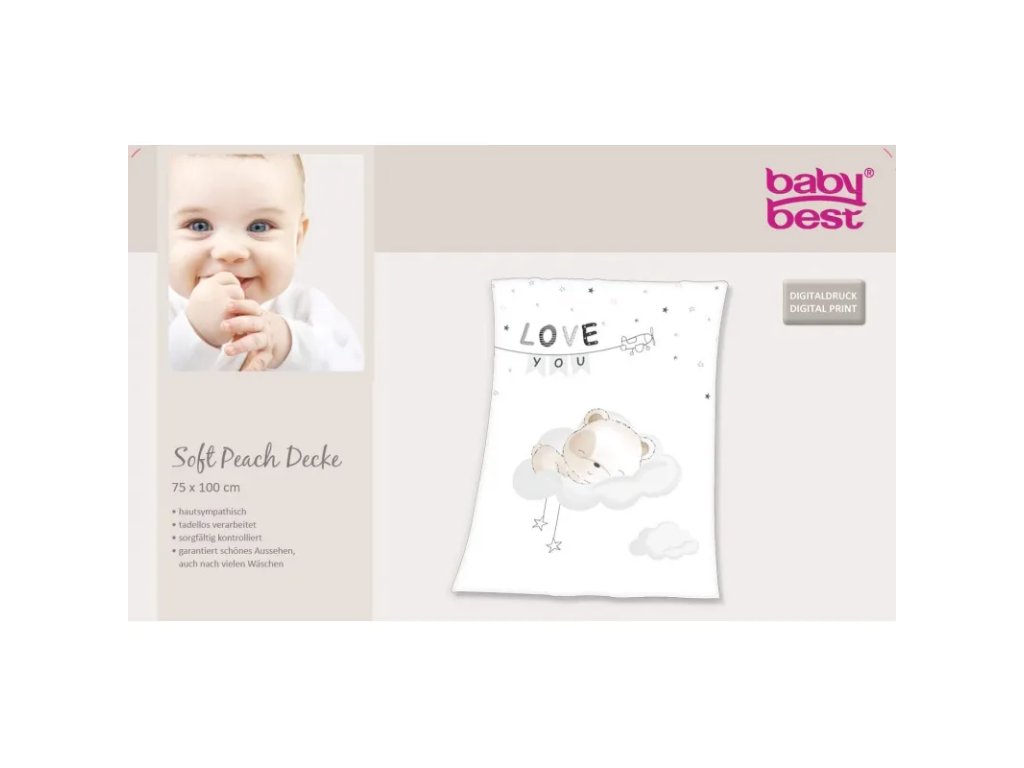 Rozkošná dětská deka s malým medvídkem je vhodná do postýlky či do kočárku a díky maximálně příjemné supersoft flísové úpravě se určitě stane oblíbenou dekou pro vaše děťátko.• rozměr 75 x 100cm