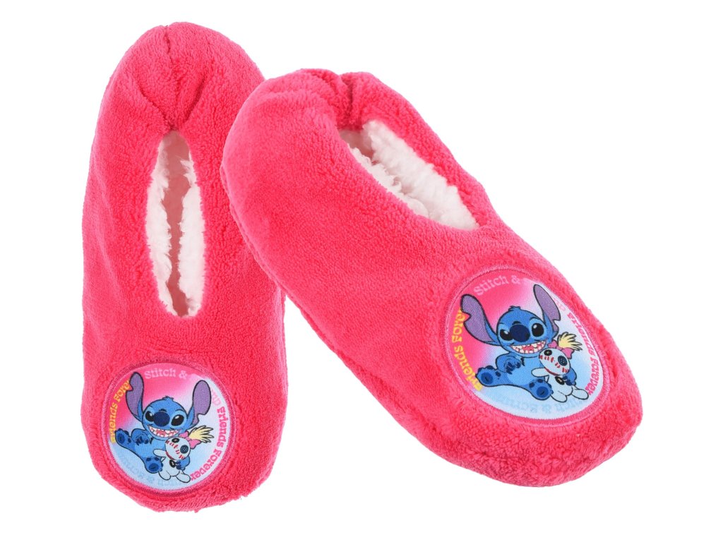Teplé bačkory s motivem Lilo a Stitch. Materiál: 100% polyester, jemný flís. S protiskluzem. Barva: malinová. Oficiální licence. Sun City8/10 Avenue du Stade de France93216 Saint-DenisE-mail: service-client@sun-city.frDoplňkové parametry