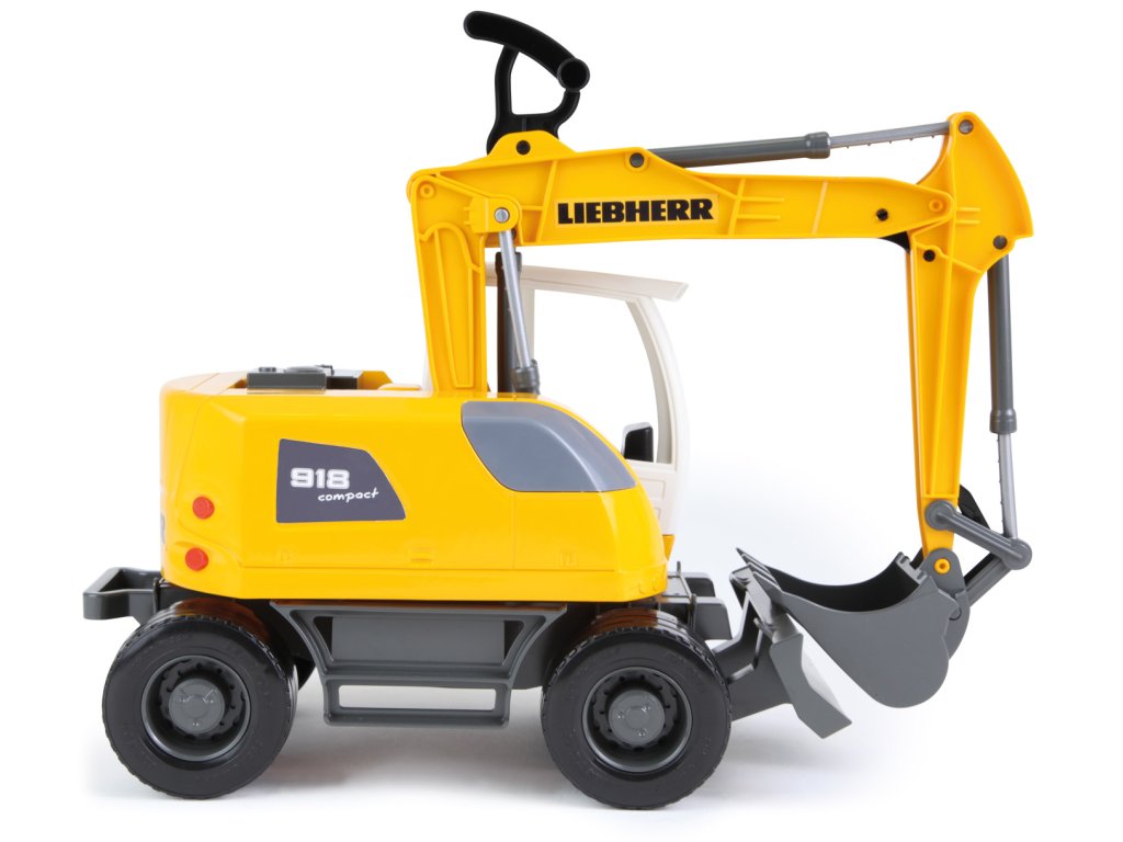 Bagr Liebherr A 918 Litronic. 6mm tlusté kovové osky u kol. Horní otočná část o 360° s možností aretace. Rameno bagru lze natáhnout 55cm. Pohyblivá přítlačná radlice.Doplňkové parametry