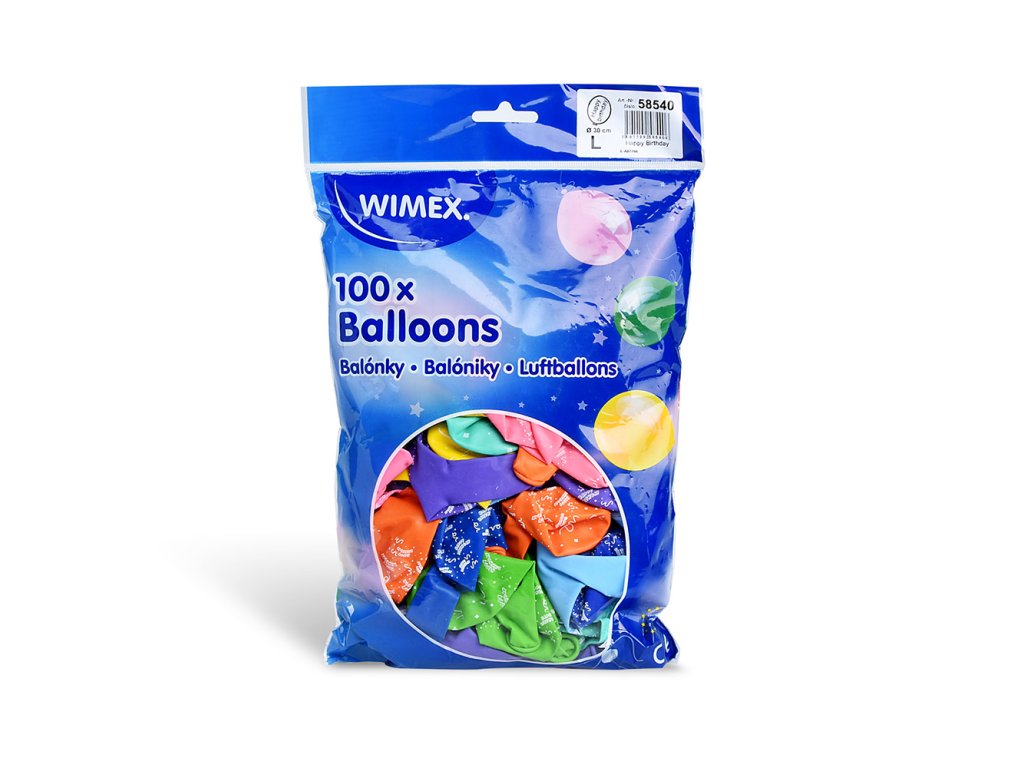 Nafukovací balón s potiskem Happy Birthday. Balení obsahuje 100 ks. Průměr L - 30 cm.Doplňkové parametry