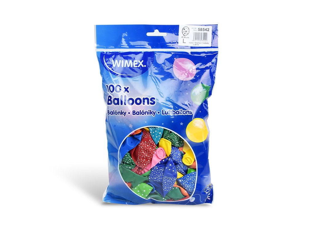 Nafukovací balón s potiskem Hvězdy. Balení obsahuje 100 ks. Průměr L - 30 cm.Doplňkové parametry