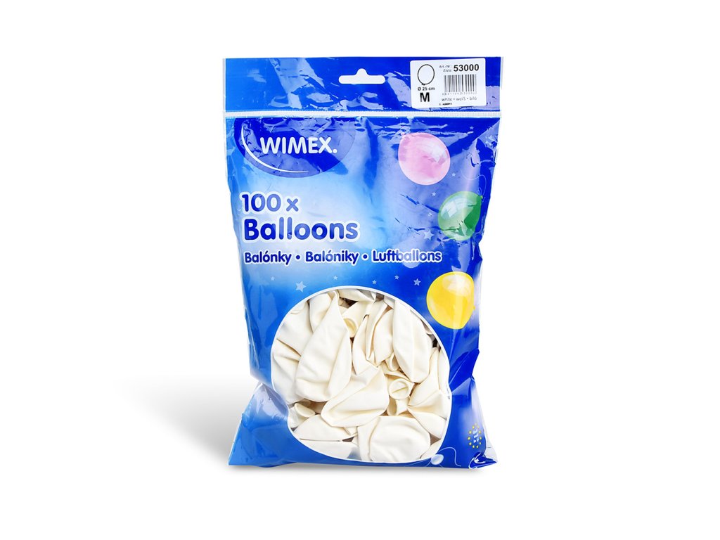 Balón bílý M. Balení obsahuje 100 kusů. Průměr 25 cm.Doplňkové parametry