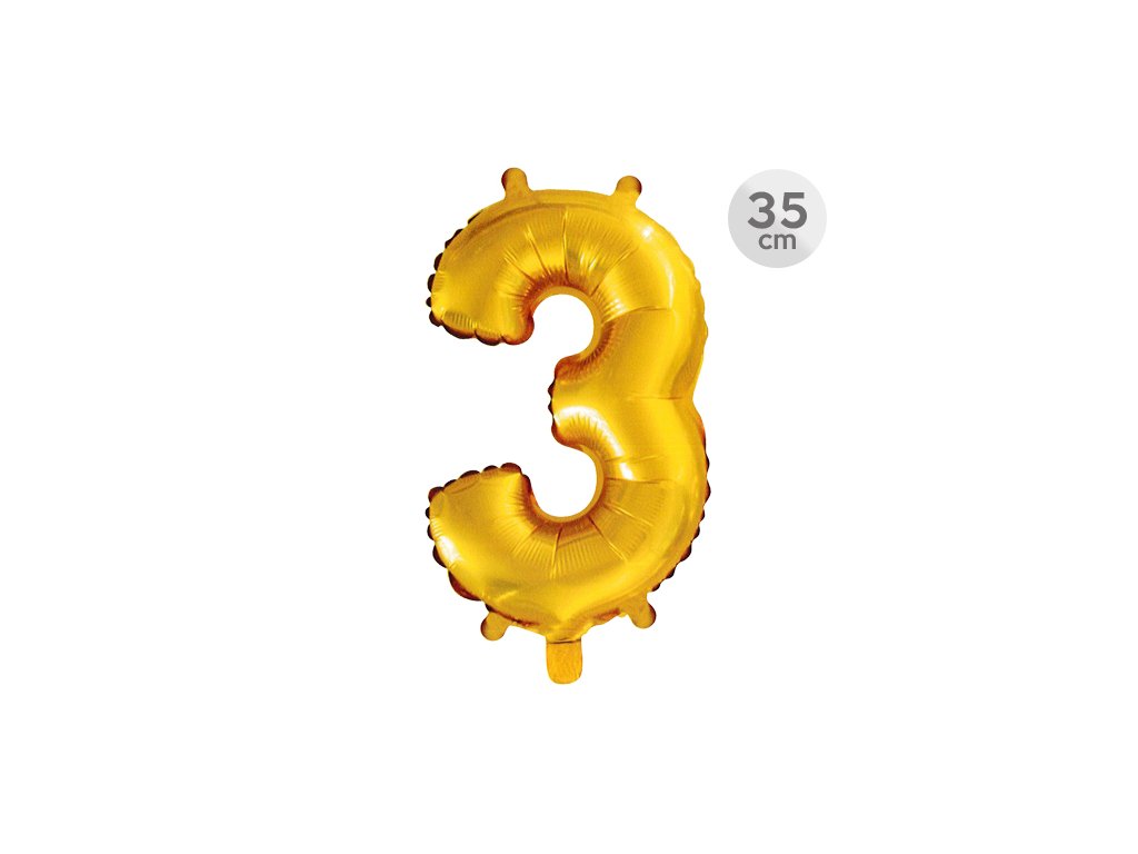 Narozeninový balón ve tvaru čísla 3 - zlaté barvy. Velikost balónu je cca 35 cm. Balón je samotěsnící, takže není nutné vázání. V balení se nenachází brčko na nafouknutí. Na balónu jsou čtyři otvory na zavěšení.Doplňkové parametry