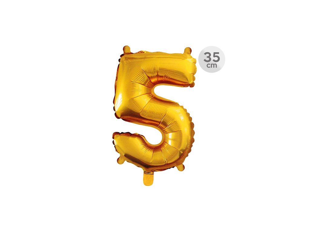 Narozeninový balón ve tvaru čísla 5 - zlaté barvy. Velikost balónu je cca 35 cm. Balón je samotěsnící, takže není nutné vázání. V balení se nenachází brčko na nafouknutí. Na balónu jsou čtyři otvory na zavěšení.Doplňkové parametry
