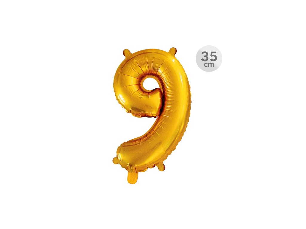 Narozeninový balón ve tvaru čísla 9 - zlaté barvy. Velikost balónu je cca 35 cm. Balón je samotěsnící, takže není nutné vázání. V balení se nenachází brčko na nafouknutí. Na balónu jsou čtyři otvory na zavěšení.Doplňkové parametry