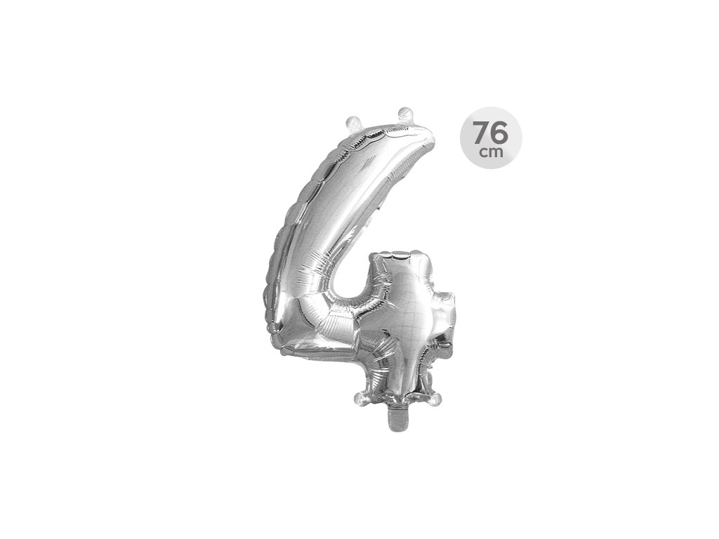 Narozeninový balón ve tvaru čísla 4 - stříbrné barvy. Velikost balónu je cca 86 cm. Balón je samotěsnící, takže není nutné vázání. V balení se nenachází brčko na nafouknutí. Na balónu jsou čtyři otvory na zavěšení. Tento fóliový balón je vhodný na nafouknutí héliem nebo vzduchem.Doplňkové parametry