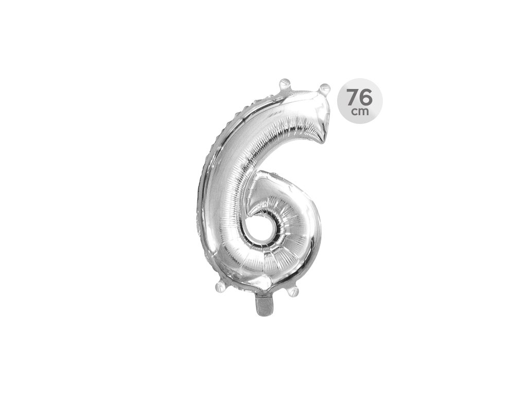 Narozeninový balón ve tvaru čísla 6 - stříbrné barvy. Velikost balónu je cca 86 cm. Balón je samotěsnící, takže není nutné vázání. V balení se nenachází brčko na nafouknutí. Na balónu jsou čtyři otvory na zavěšení. Tento fóliový balón je vhodný na nafouknutí héliem nebo vzduchem.Doplňkové parametry