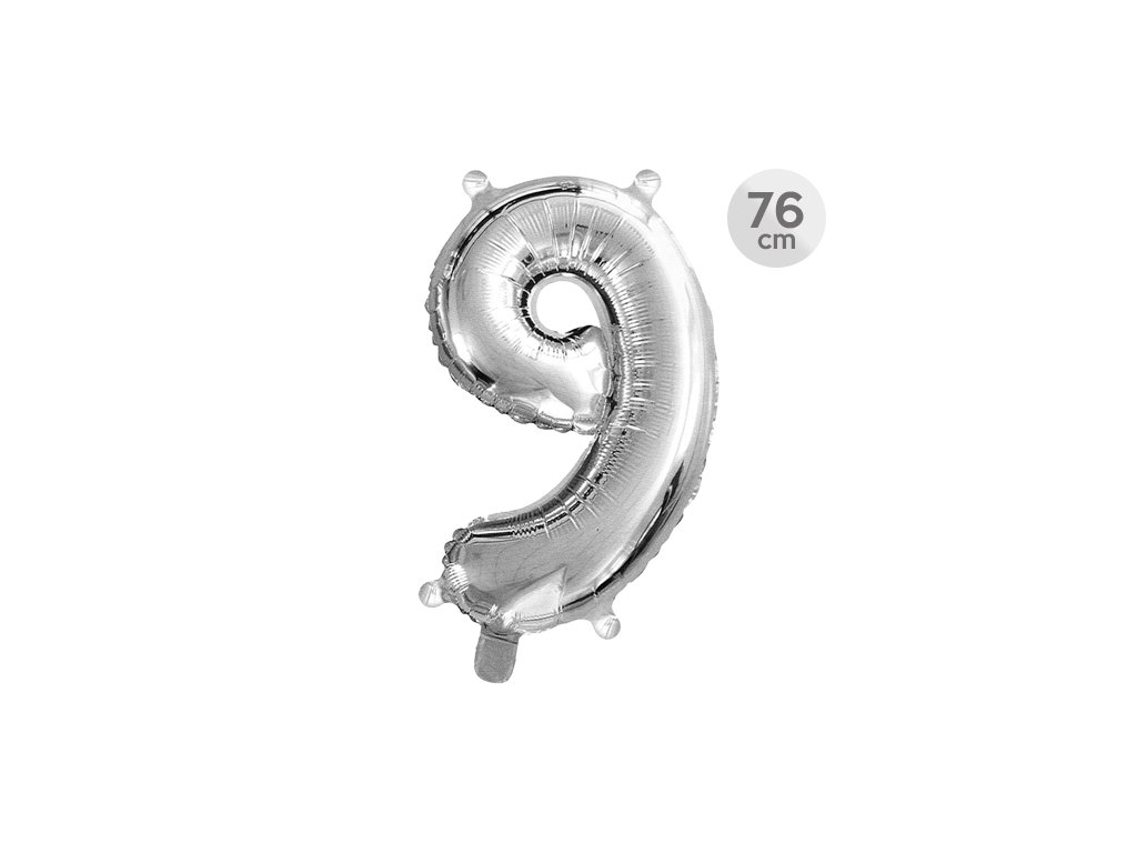 Narozeninový balón ve tvaru čísla 9 - stříbrné barvy. Velikost balónu je cca 86 cm. Balón je samotěsnící, takže není nutné vázání. V balení se nenachází brčko na nafouknutí. Na balónu jsou čtyři otvory na zavěšení. Tento fóliový balón je vhodný na nafouknutí héliem nebo vzduchem.Doplňkové parametry