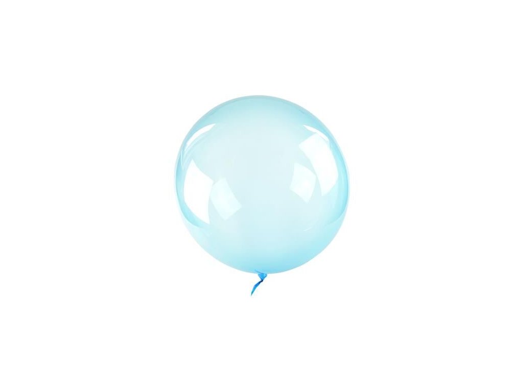 Transparentní balónek v modré barvě. Po nafouknutí balónek připomíná velkou mýdlovou bublinu. Jeho průměr je 50 cm.Doplňkové parametry