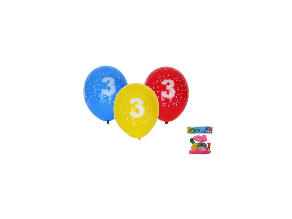Balónek nafukovací 30cm - sada 5ks, s číslem 3