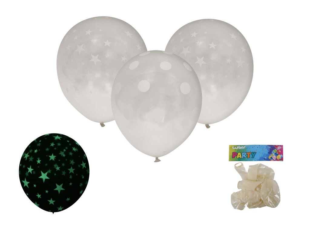Balónek nafukovací 30cm - sada 6ks, svítící ve tmě