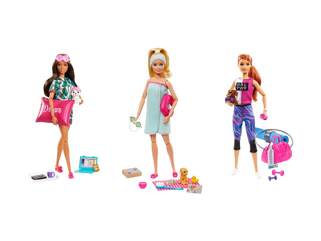 Wellness panenka Barbie® ví, že nejlepší je věnovat si tu nejlepší péči! Tyto herní sety panenky a doplňků ukazují její oblíbené způsoby, jak načerpat energii. Vybírejte z motivů lázní, cvičení a turistiky. Každá panenka Barbie® má na sobě pohodlné elegantní oblečení vhodné pro její aktivitu. Zbavte se stresujícího dne s doplňky, jako je polštář na krk a kartáč do koupele v lázeňském setu, udržujte se v kondici s podložkou na jógu, lahví na vodu a taškou do posilovny ze setu na cvičení nebo si užijte turistiku v přírodě s doplňky, jako je batoh na štěňata a fotoaparát. Děti mohou sesbírat všechny panenky, protože když si hrají s Barbie®, představují si, čím vším se mohou stát! Prodávají se samostatně dle aktuální nabídky. Panenka nemůže stát samostatně. Barvy a vzhled výrobku se mohou lišit.Doplňkové parametry