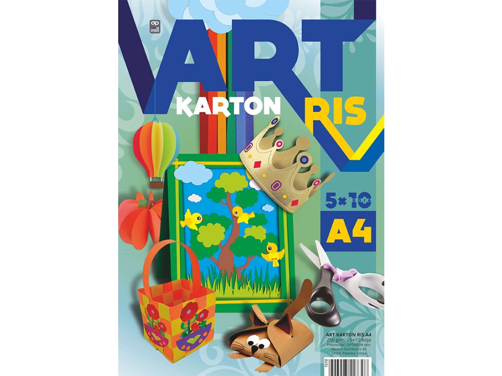 Barevný karton A4 mix barev 250 g/m2, 10 barev x 5 ks