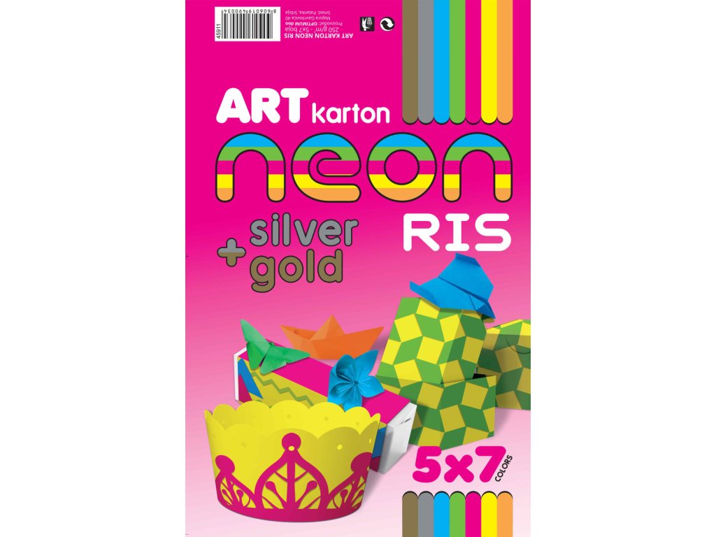 Barevný karton NEON A4 mix barev 250 g/m2, 7 barev x 5 ks