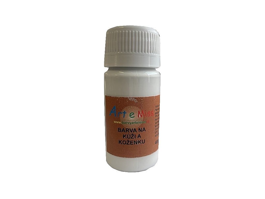 Barvu naneste na čistý a suchý povrch Po zaschnutí lesklá a voděodolná Barva je v konzistenci přímo k malování Použití Barvenou plochu důkladně očistěte a odmastěte lihem nebo saponátem a nechejte dokonale uschnout. Lahvičku dobře protřepejte nebo promíchejte. Vyzkoušejte na neviditelném místě, protože kůže i koženka může být ošetřena různými přípravky nebo úpravami proti znečištění a proto by barva nemusela na povrchu dobře držet. Barvu nanášejte v tenké vrstvě. Světlé odstíny nepřekryjí tmavý nebo výrazně barevný povrch, podklad bude prosvítat. Pokud natřete více vrstev, může film snadno popraskat. Po zaschnutí vytváří pružný, voděodolný film. Nabarvenou plochu omývejte jen běžnými čistícími prostředky s obsahem saponátu nebo mýdla. Nepoužívejte abrazivní ani chemické přípravky.Pokud budete kůži impregnovat, vyzkoušejte na malém kousku. Na výběr z pěti barev: Černá, bílá, béžová, tmavě hnědá, světle hnědá Požadovanou barvu prosím uveďte do poznámkyDoplňkové parametry