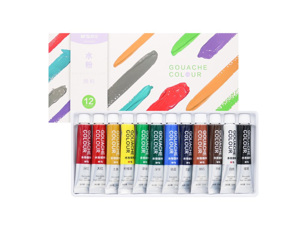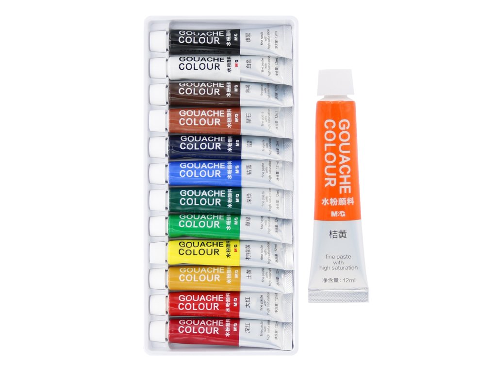 Barvy gvašové M&G 12 ml - sada 12 ks