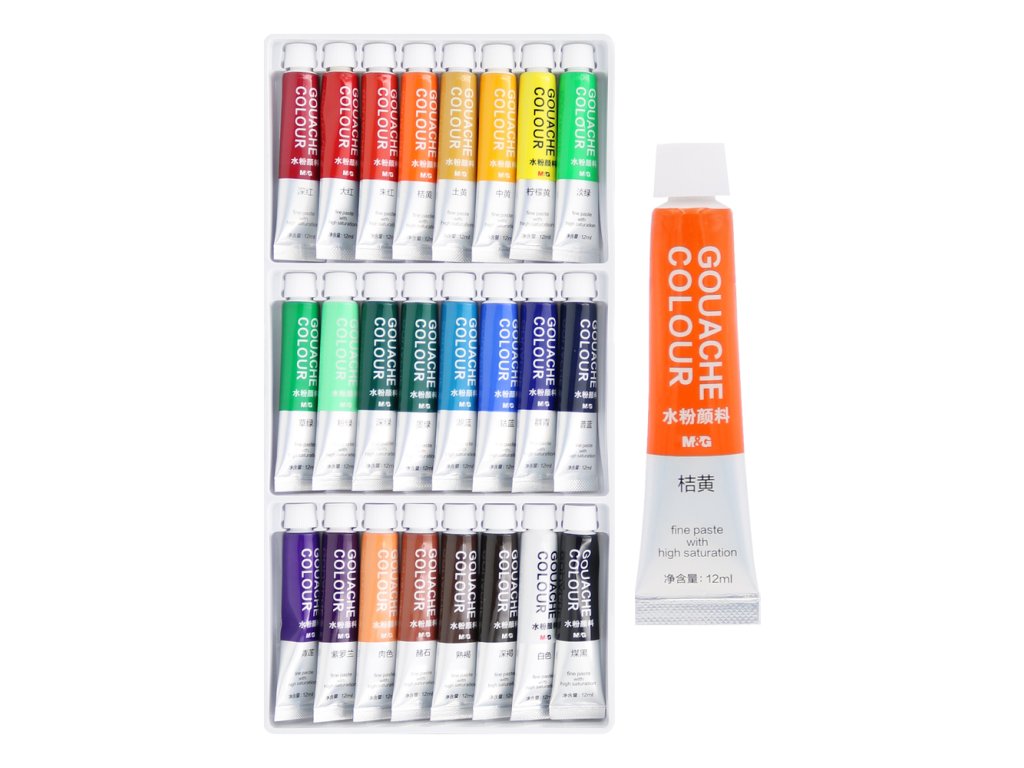 Barvy kvašové M&G 12 ml - sada 24 ks