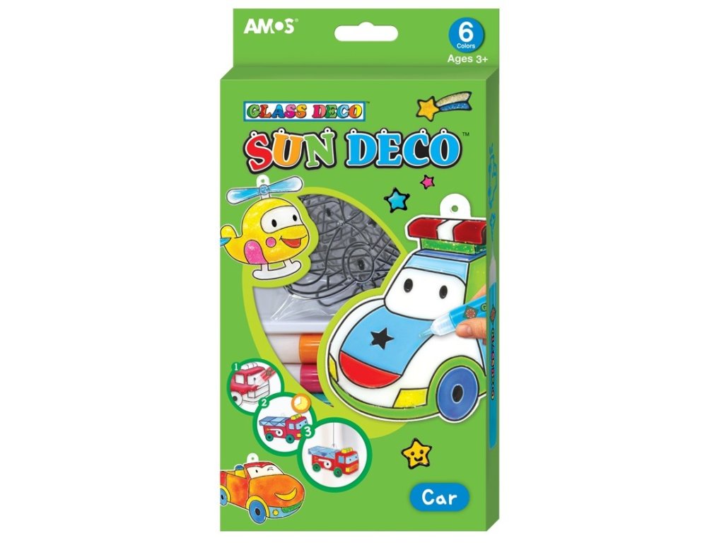 Barvy na sklo sada 6 barev 10,5 ml + 6 sklíček - Auta