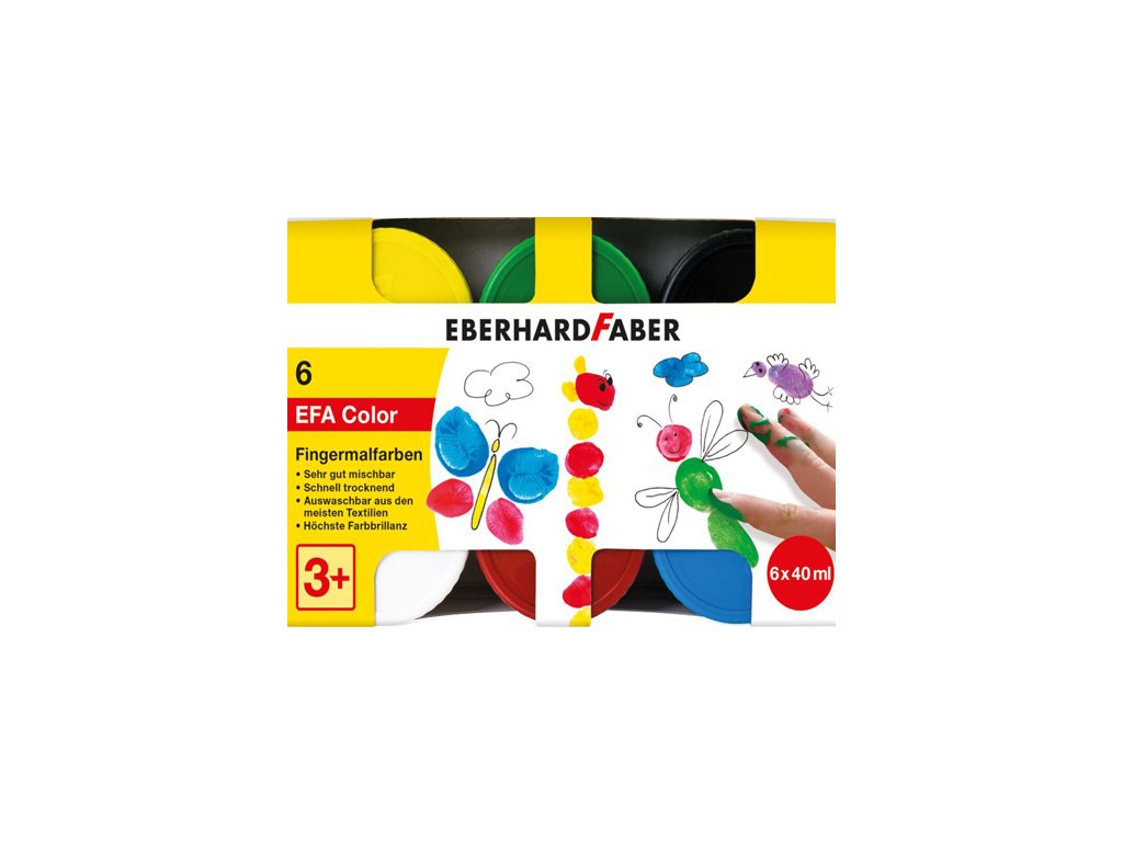 Prstové barvy EFA představují pro děti první kontakt s barvami. Umožňují jim rozvíjet aktivity s barvami při kterých vzniká fyzická interakce s kresbou. Přispívají k rozvoji hmatového vnímání a zlepšují motorickou koordinaci. Barvy se mohou aplikovat prstem, štětcem, houbou. Barvy jsou omyvatelné z kůže. - Prstové barvy v uzavíratelných kelímcích - Navzájem mísitelné barvy - Zářivé a syté barvy - Vypratelné z většiny textilií - Vynikající krycí vlastnosti - 6 barevné x 40 mlDoplňkové parametry