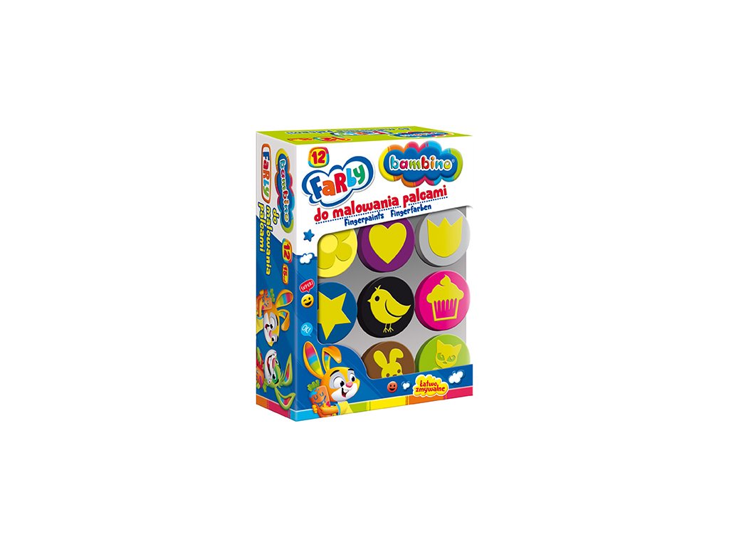 kreativní sada 12 barev BAMBINO pro malování prstysnadno omyvatelnélze použít bez použití vodydokonale roztíratelné na papír, lepenku nebo kartonkaždá nádobka s barvou má víčko s razítkemneškodné - barvy splňují základní požadavky směrnice Evropského parlamentu a Rady 2009/48 / ES ze dne 18. června 2009 o bezpečnosti hraček a požadavky příslušných harmonizovaných norembalení obsahuje 12ks intenzivních barevnádoby o objemu 15 mlmotiv razítek podléhá náhodnému výběru Varování: Nevhodné pro děti do 3 let, obsahuje malé části, nebezpečí udušení při požití! Vyvarujte se kontaktu barev s očima a sliznicemi.Doplňkové parametry