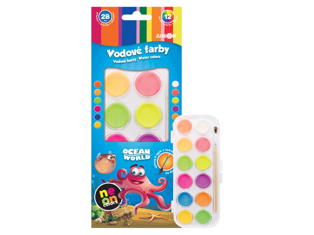 Barvy vodové - 12 barev/28 mm + štětec, neonové