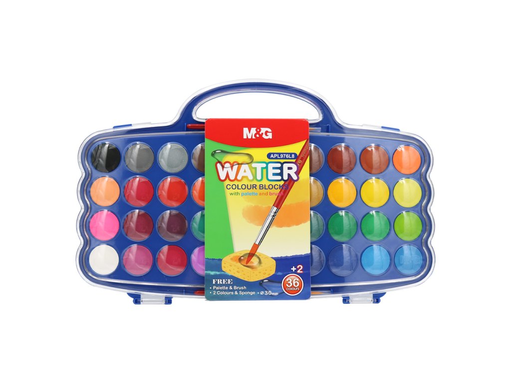 Vodové barvy v praktickém kufříku s průhledným vrchem - paletkou.