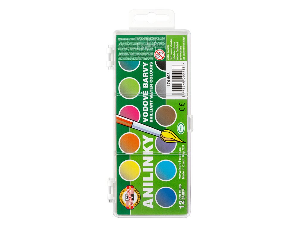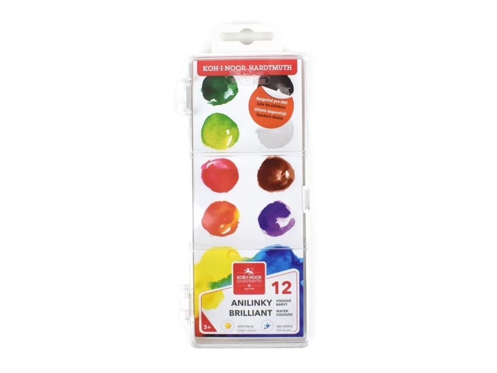 Barvy vodové brilliant KOH-I-NOOR Anilinky 22 mm - sada 12 ks