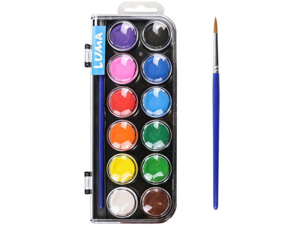 Barvy vodové LUMA se štětcem - 12 barev