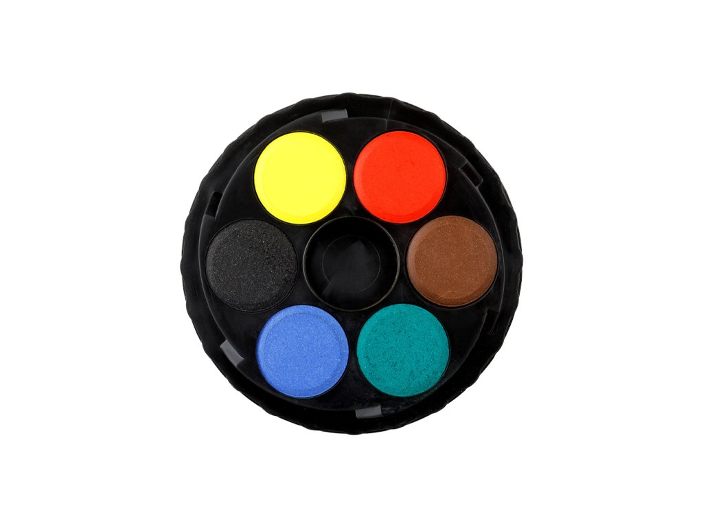 6-barevná sada netoxických vodových barev dodávaná v okrouhlém plastovém boxu. Barvy jsou vodou ředitelné, vhodné na papír a jiné savé materiály.Doplňkové parametry