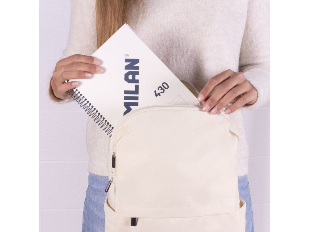 Batoh s tromi priehradkami na zips a kompaktným tvarom, ktorý optimalizuje priestor.