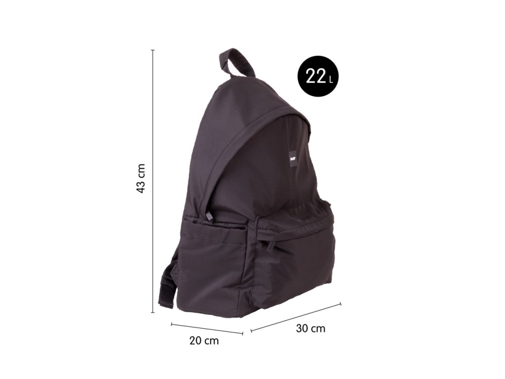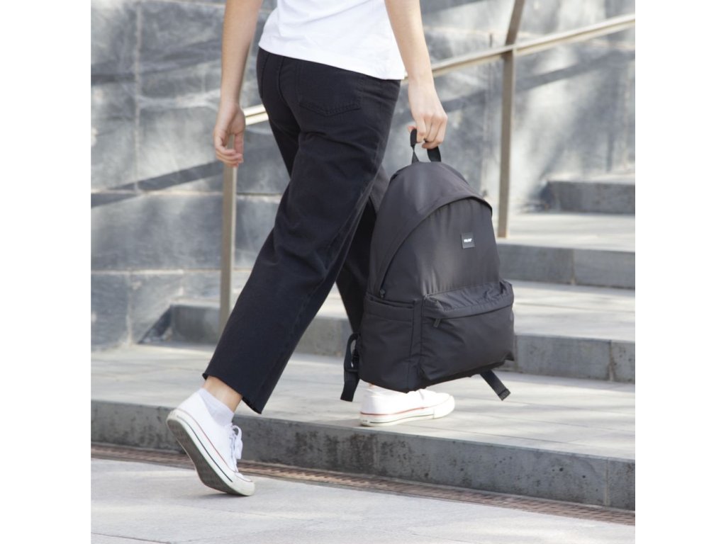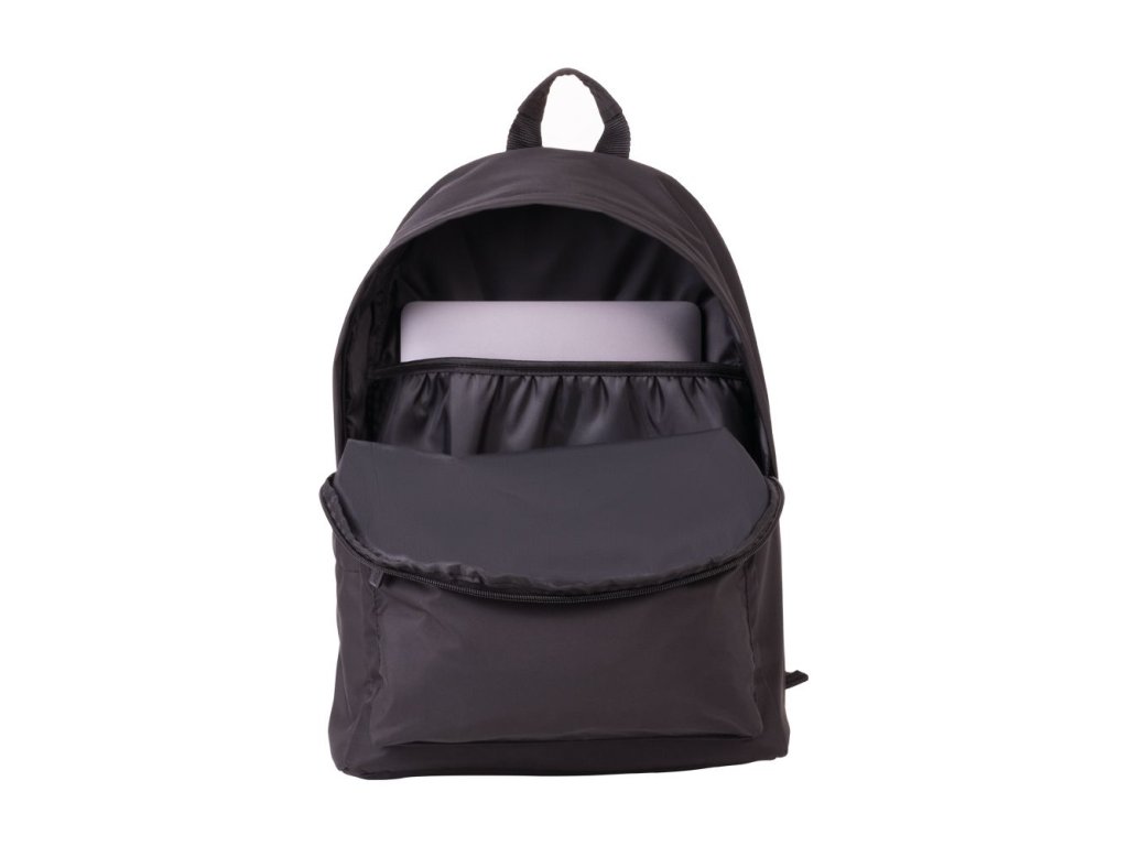 Batoh má 2 komory (2 zipy), vyrobený z měkké polyesterové tkaniny, mírně lesklá a příjemná na dotek.